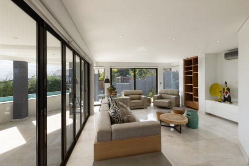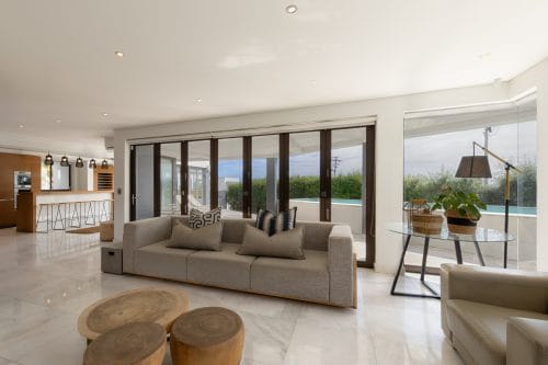 Floor-to-ceiling glass doors for indoor-outdoor flow