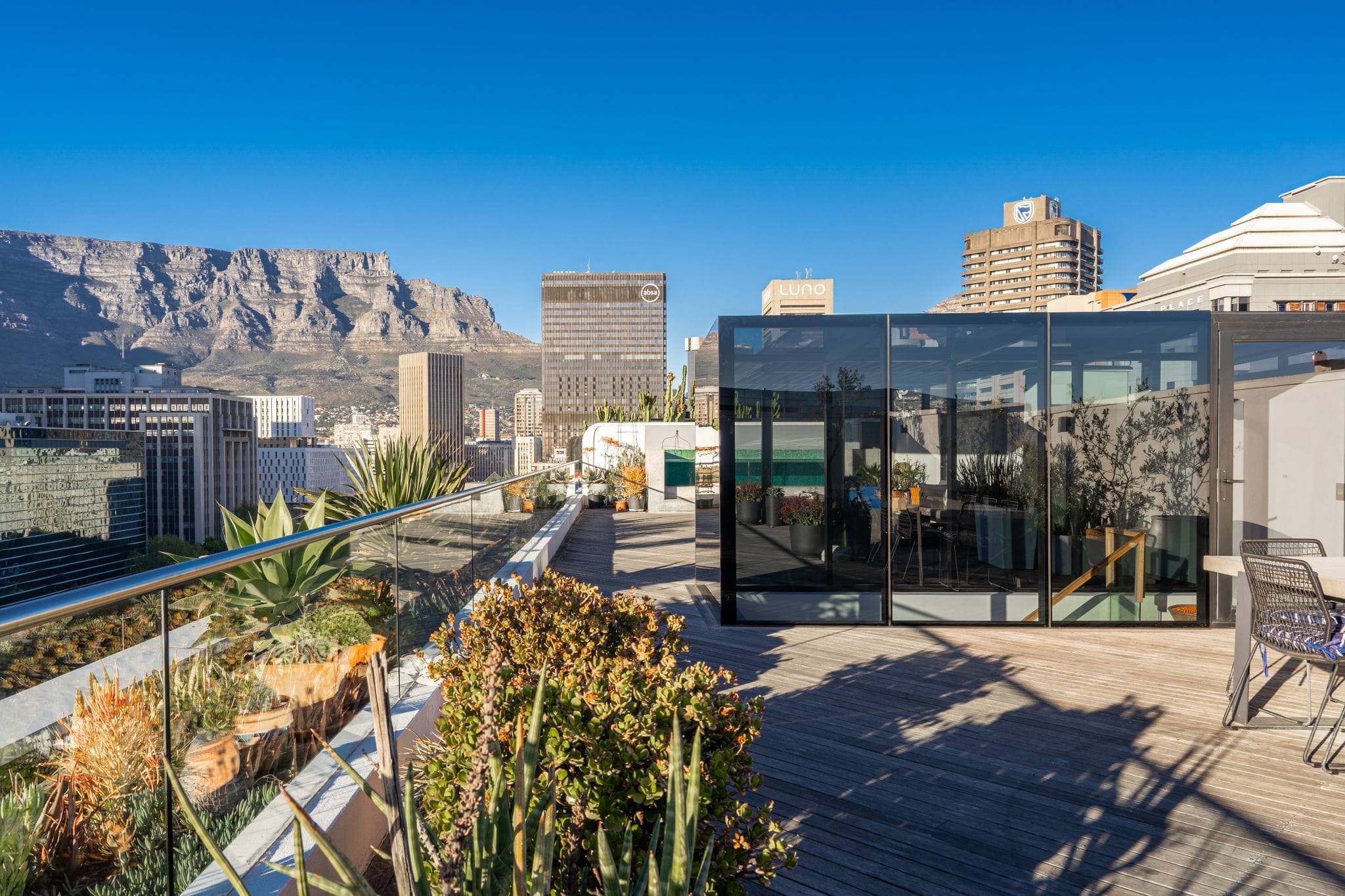Spanning 169m² with an airy, open-plan layout and high ceilings, this apartment seamlessly connects to a 50m² wraparound balcony from every room. A private 150m² rooftop terrace offers breathtaking panoramic views of Table Mountain and the harbor.