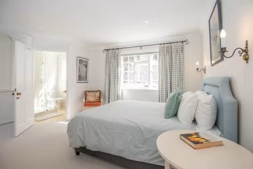The second bedroom features an en suite bathroom, while a guest loo downstairs adds convenience. Outdoor spaces include a Mediterranean-style back patio for alfresco dining and a quaint rose courtyard in front, offering both beauty and tranquility.